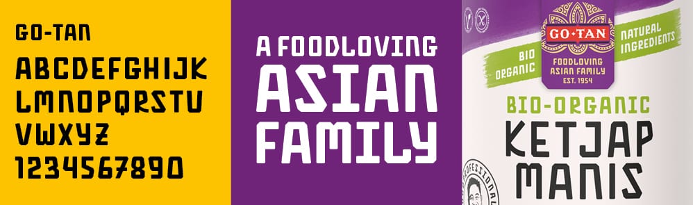 Een voorbeeld van een custom font van Go-Tan dat zorgt voor een unieke uitstraling en consistentie in (packaging)design.