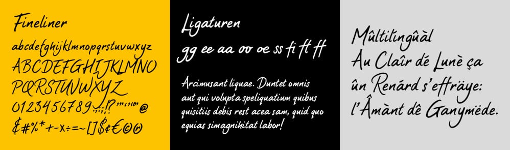 Fineliner is een font dat ik van mijn eigen handschrift heb gemaakt. Dit font bevat ook zogenaamde ligaturen om het er zo realistisch mogelijk uit te laten zien. (creativefabrica.com/product/fineliner)