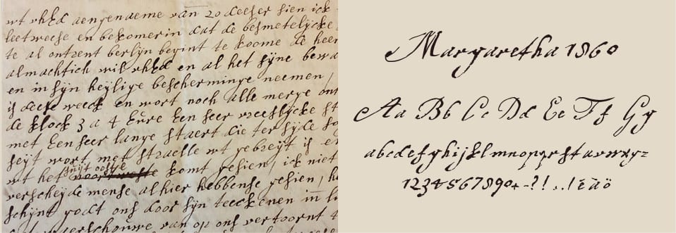 Handgeschreven brieven van Margaretha Turnor uit 1860 zijn gebruikt voor het ontwikkelen van een font.